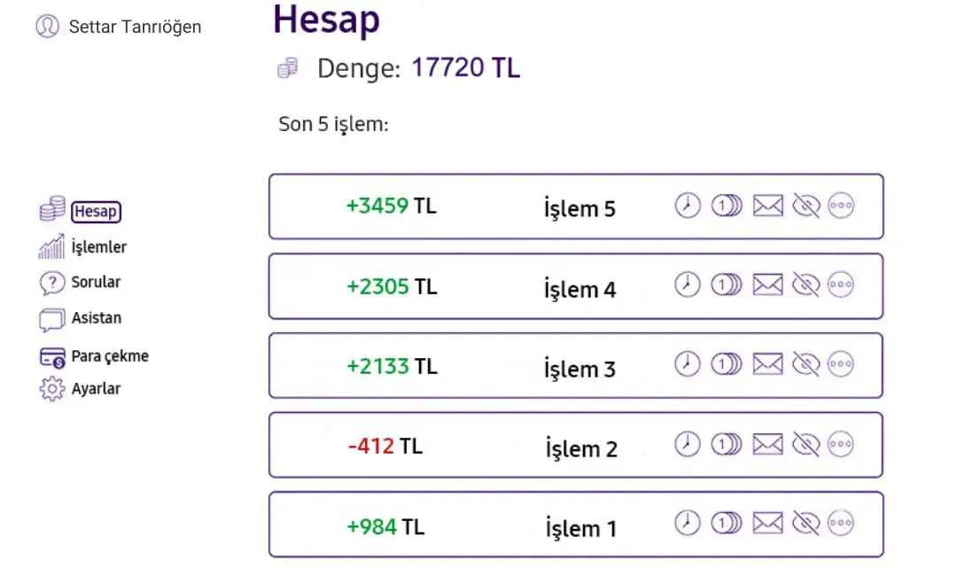 Sabahım, bakiyemi kontrol etmemle başladı, hesabımda şimdiden 17.720 TL vardı! Şunu bir hayal edin. Bir gün içinde bakiyem iki katına çıktı. Kârımı zaten çekmek istiyordum, ancak bir hafta daha beklemeye karar verdim.